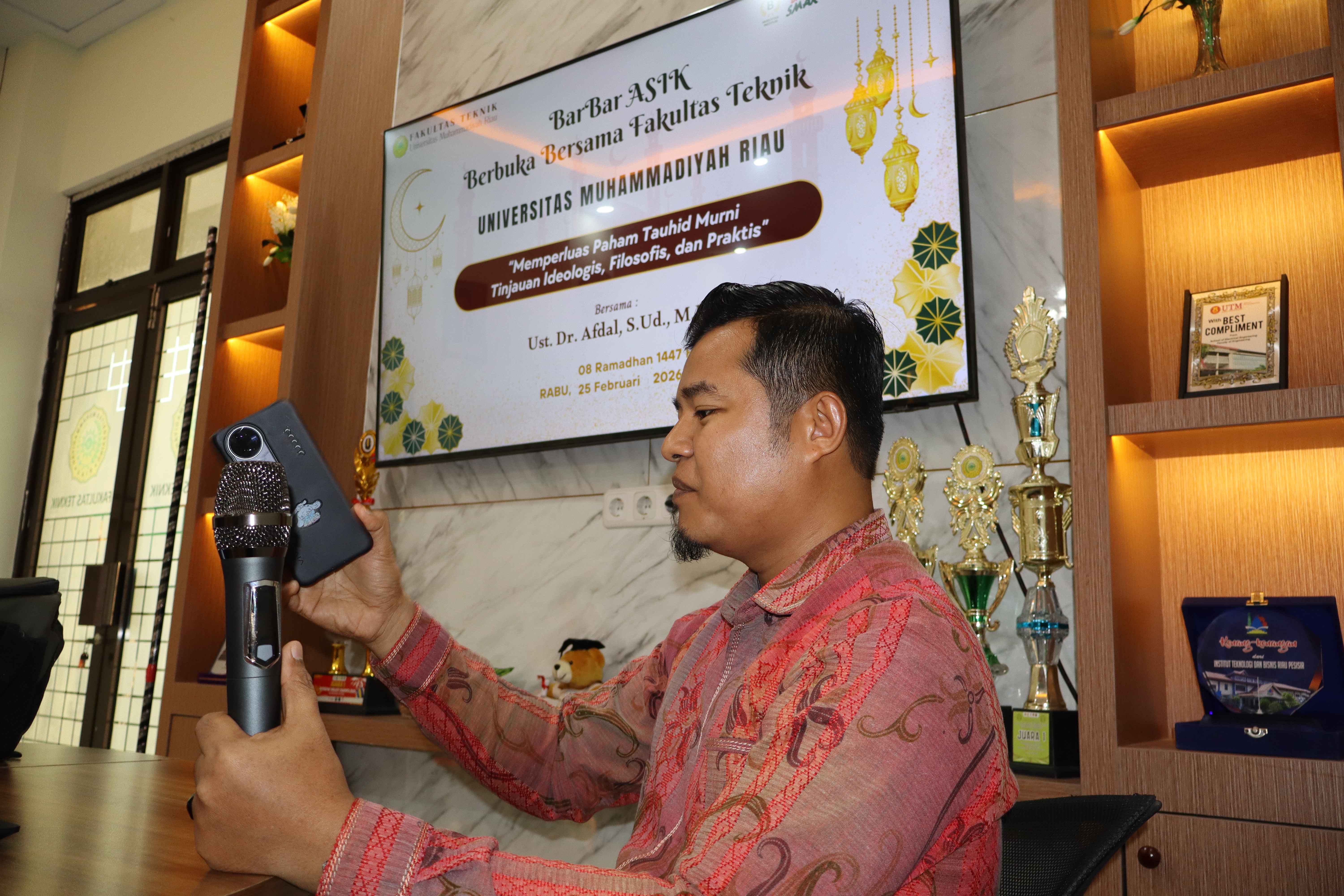 “Melalui kegiatan BarBar ASIK ini, kami berharap seluruh sivitas akademika Fakultas Teknik Universitas Muhammadiyah Riau dapat mempererat tali silaturahmi, meningkatkan keimanan dan ketakwaan, serta menjadikan Ramadhan sebagai momentum untuk membangun karakter yang lebih baik, baik dalam kehidupan akademik maupun kehidupan bermasyarakat,” ujarnya.